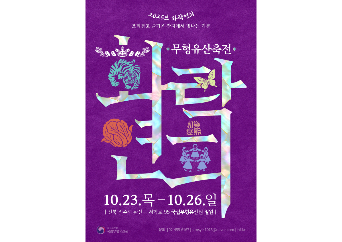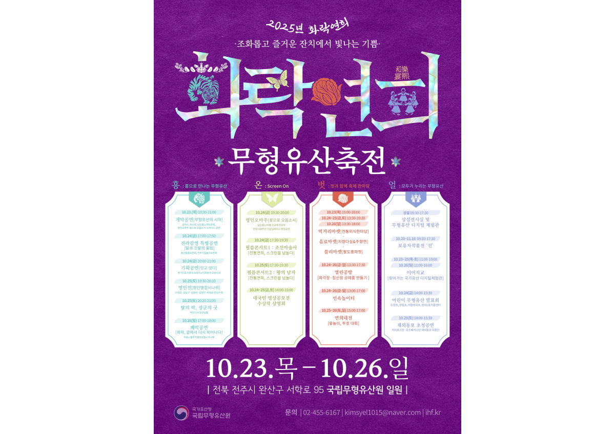 K-컬처의 뿌리, 무형유산으로 하나 되는 축제의 장 -「2025 무형유산축전, 화락연희」(10.23.~26.) 전주 국립무형유산원)··· 무형유산 공연·전시·체험 등 한자리에 |