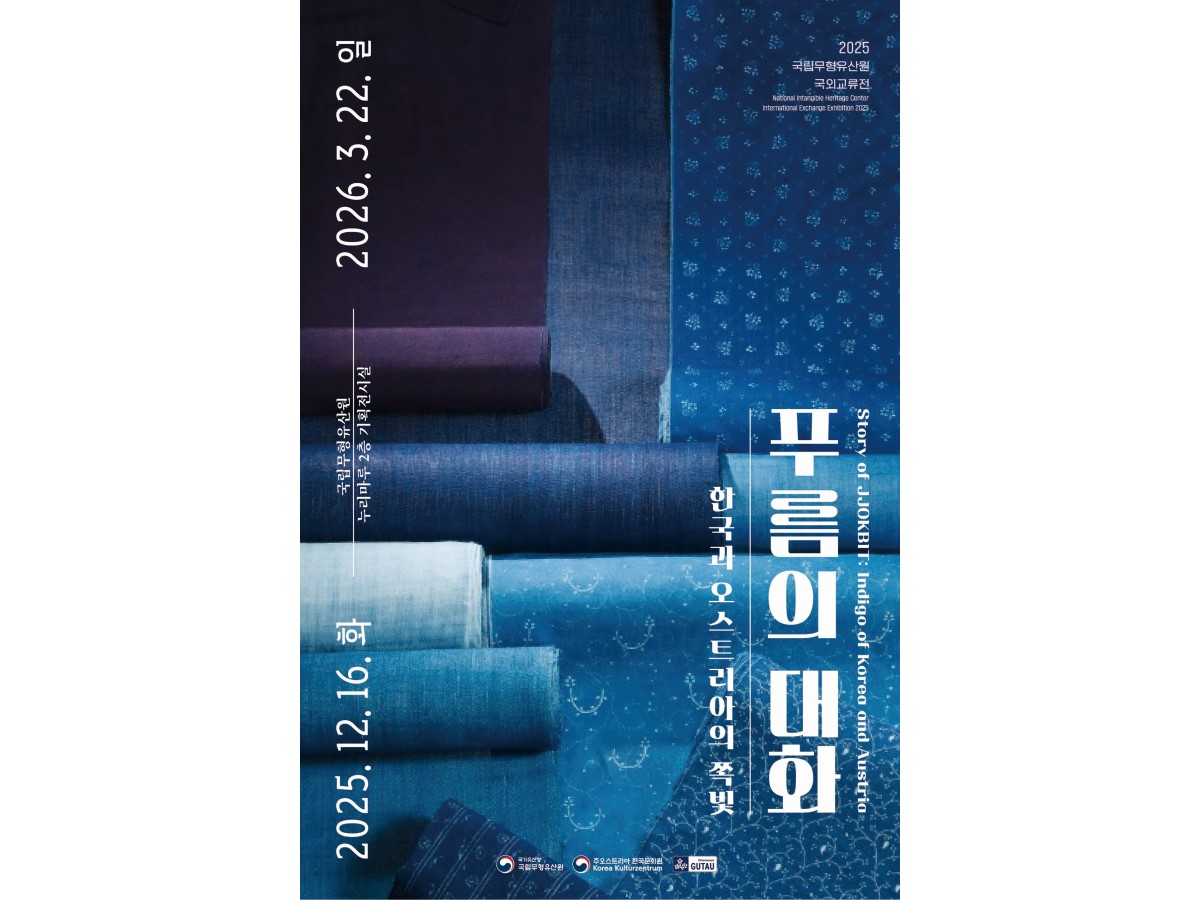 국가유산청 국립무형유산원(원장 박판용)은 12월 16일부터 2026년 3월 22일까지 국립무형유산원 기획전시실(전북 전주시)에서 한국과 오스트리아의 전통 쪽빛 염색 공예를 주제로 ‘푸름의 대화: 한국과 오스트리아의 쪽빛’ 전시를 개최한다.