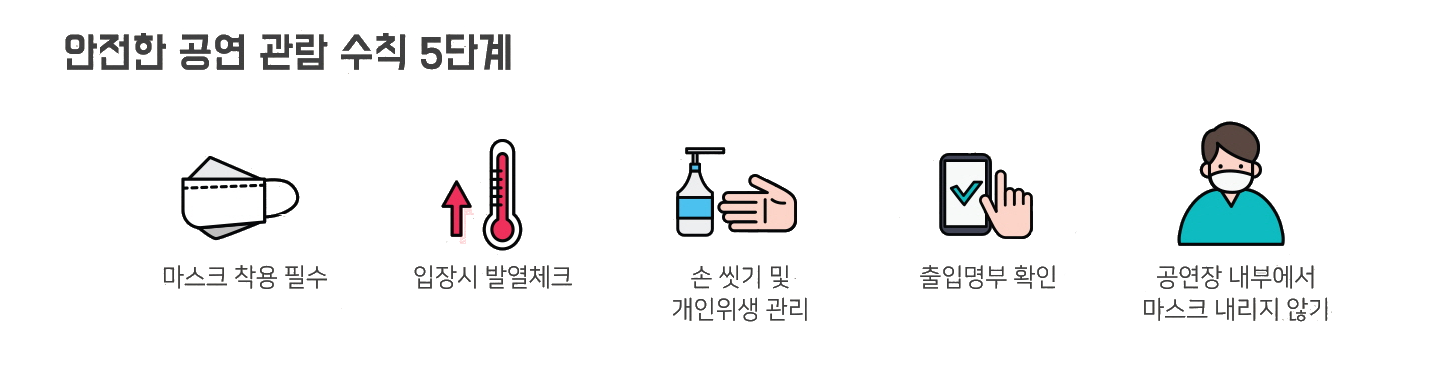 - 공연장 입장 시 비접촉 체온 측정 이 진행됩니다. 측정 온도 37.5ºC 이상 (발열 기준 온도) 일 경우 재 측정이